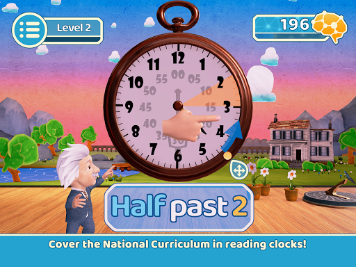 Move hour and minute hands across 8 different levels and learn how to tell the time in different configurations: O'Clock, quarter and half, and past and to.