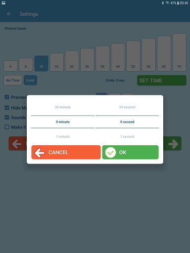 * Number of Pictures: Here you can choose how many pictures you want to play the game with. Preset