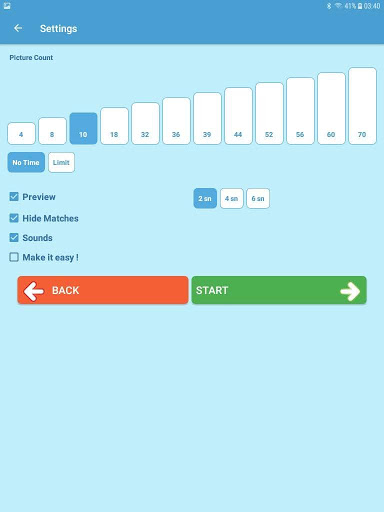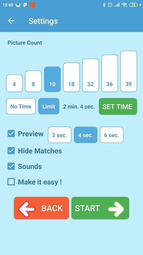 * Show Preview: If selected, you can see all pictures for a short time at the start of the game.