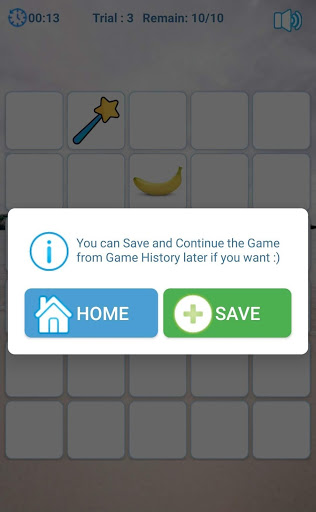 * Losing Matches: If selected, when it finds 3 of the same picture, these pictures are deleted from the screen completely. If not selected, images will remain clearly on the screen. It is selected by default.