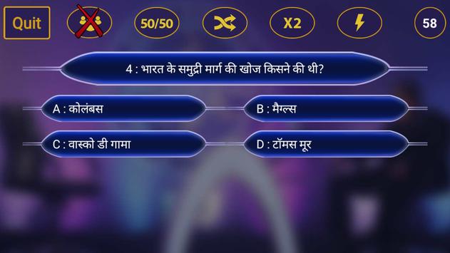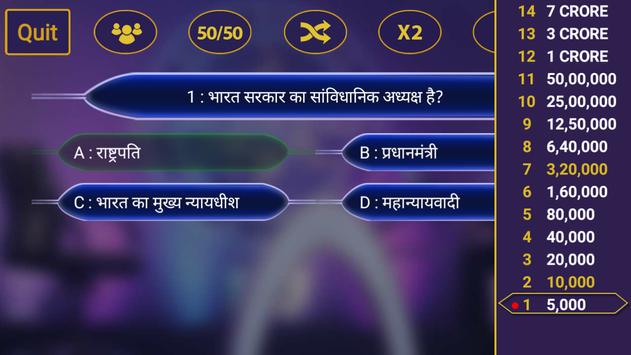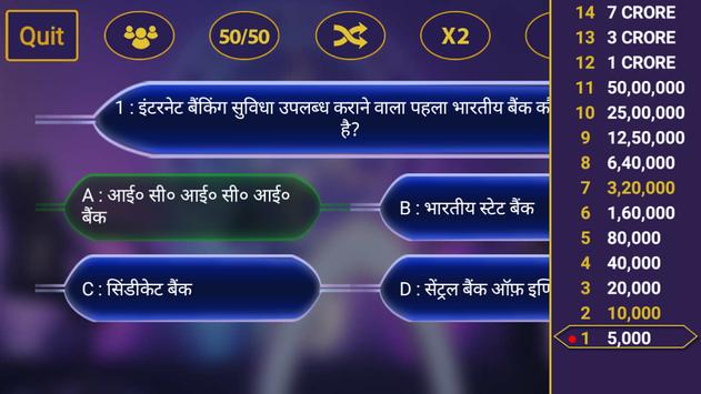 Main purpose of KBC Hindi 2017 game is preparing your self and as we all know, there is a lot of scope for Indian youth in competitive exams like IAS, IPS, GPSC(Gujarat Public Service Commission), UPSC(Union Public Service Commission). SSC, Bank Exams or Clerk PO exams. To raise your IQ and intellect with entertainment we have created this New KBC game and this is the very updated game with cool graphics and amazing sound that will give you the experience as if like you are sitting on the Hot Seat at the set of KBC.