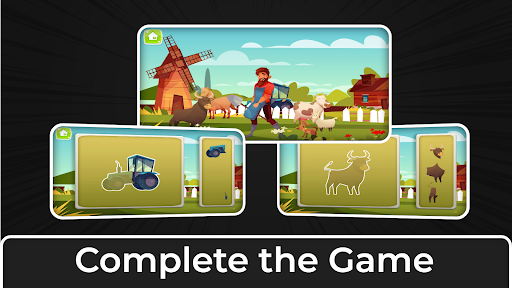 On the screen, the objects appear as empty outlines. Kids can easily drag the tiny individual images to their place of fit and complete the toddler puzzles within the specified time.