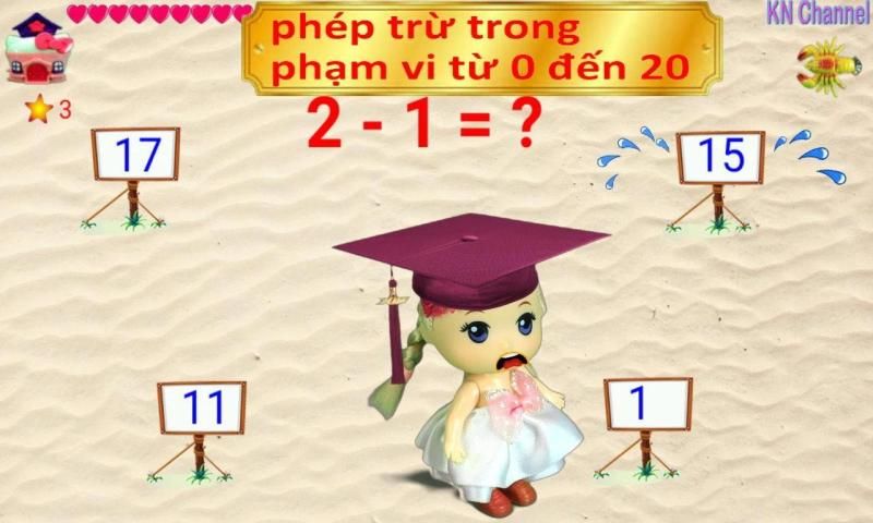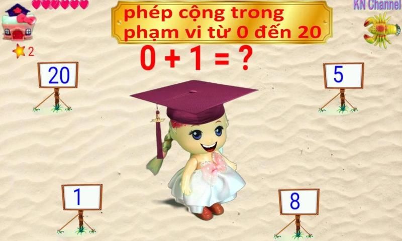 KN Channel Math For Kids is an educational game that enhances math skills, calculates simple addition and subtraction for 2 to 6 year olds. Baby will enjoy playing games rather than being constrained to study so the effect is very high.