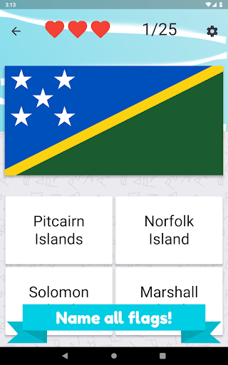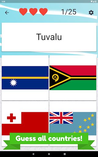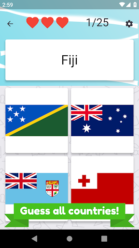 Name all Oceania countries and pick correct flag. There are 25 different island countries and flags to guess.