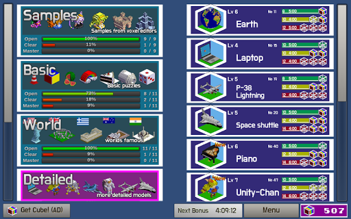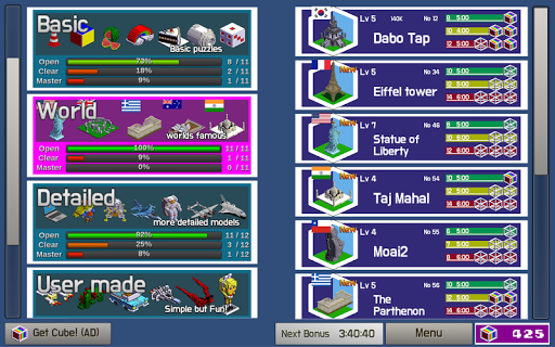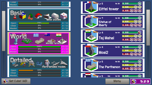 Many famous monuments and interesting voxel puzzles are ready Each time randomly made parts! With simple touch interface you can rebuild it!
