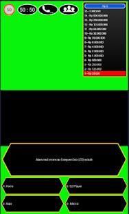 This game is a quiz show on television that offer prizes of cash in large amounts for participants to answer 15 multiple choice questions with benar.Permainan is also beneficial to sharpen the brain and increase knowledge umum.Kuis millionaires already very popular in some countries including Indonesia ,