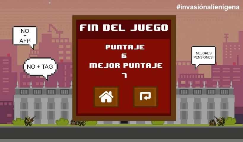 Piñera vs Aliens is a game to demonstrate the social discontent that occurs in Chile in a cartoon way.