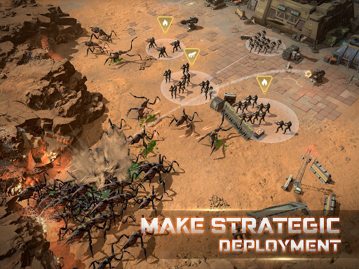* Explore the unknown areas on Mars, attack Swarms, and rescue the survivors. When your Exploration Progress reaches 100%, you can fully expand your Base and elevate your power! But be careful when exploring outside, for you may bump into giant alien sandworms and spiders!