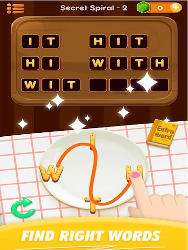 - Find as many words as possible to unlock levels and earn extra bonus coins.
