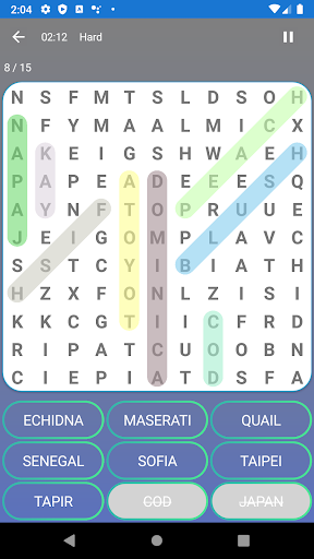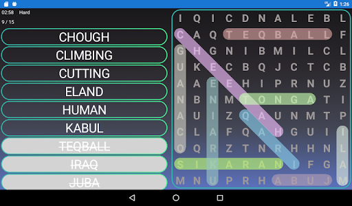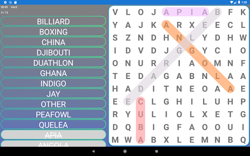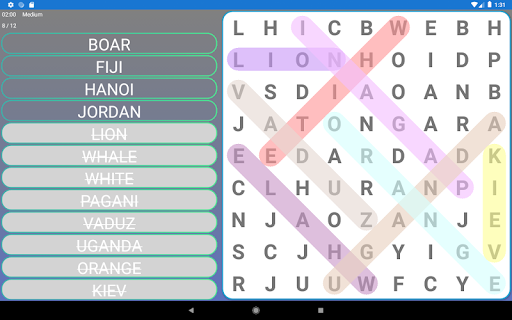 - Word search games come in 4 difficulty levels - easy word search, medium word search, hard words search, and expert words search