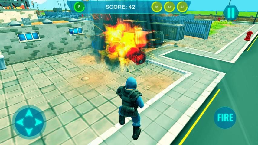 Shoot to kill the targets that might be hidden in the buildings or be positioned on top of it.