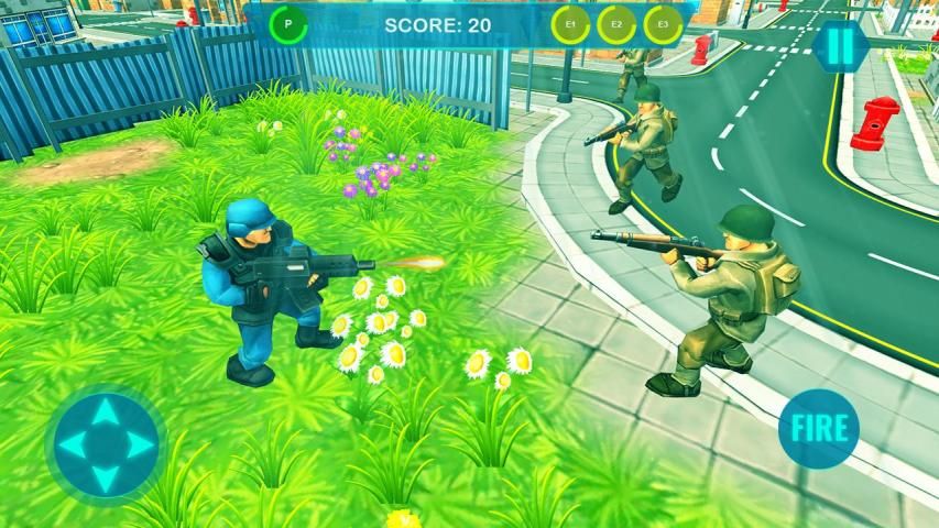 Take over the battle field and kill as many enemy combatants as you can and proceed to the next levels.