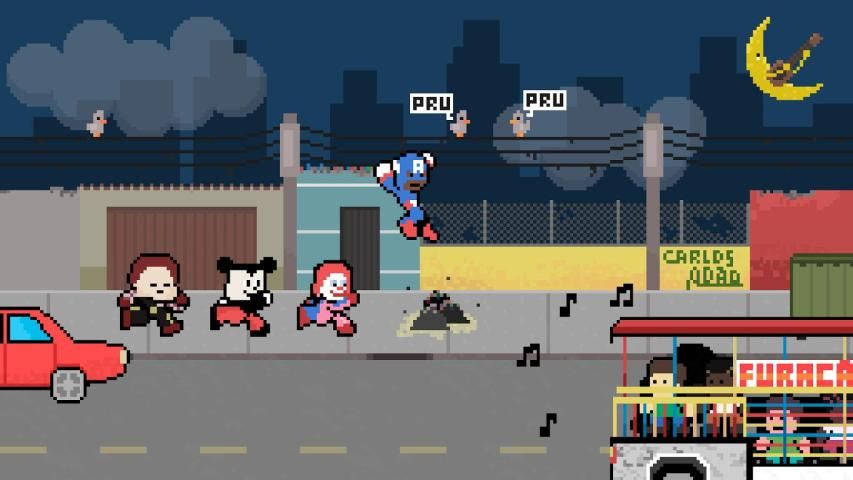 When these heroes unite, they invoke the powerful Hurricane Carreta a Gift of Ninjas, which has the power to go out at night in the city bring joy to people, climbing walls, bumping into bikes, dancing and causing confusions high!