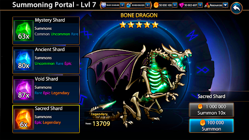 Recruit various heroes from might and magic. Collect, train and upgrade over 50 creatures: Knights, Dragons, Beholder, Griffin, Medusa and many more.