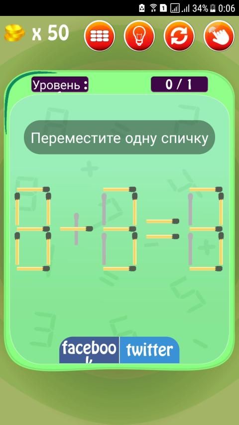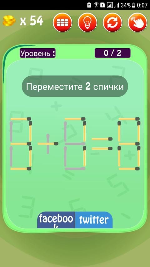 In this application you will find puzzles with matches (with answers). For each correct decision, game coins are accrued; they can be used for hints if you cannot solve a puzzle.