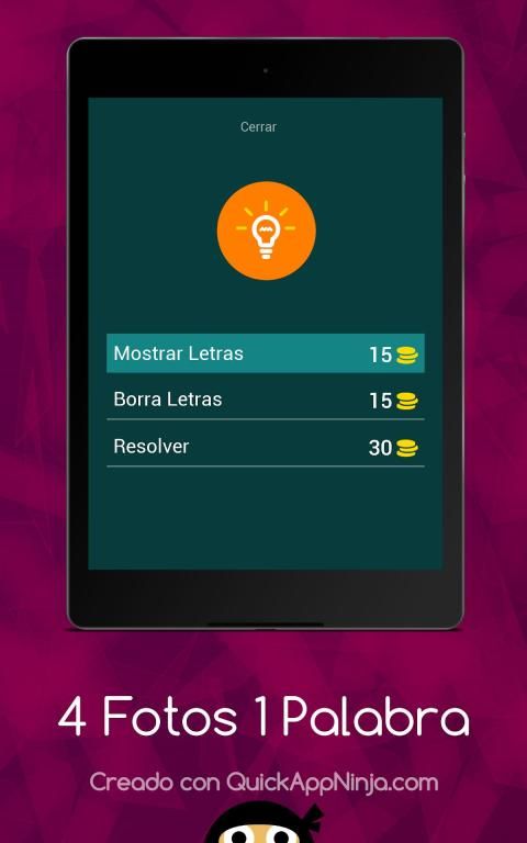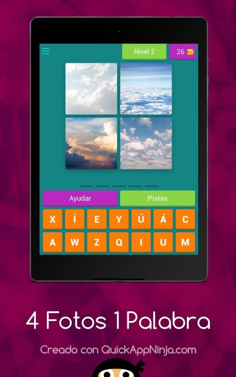 ¿Cómo se juega? observa las 4 fotos y adivina la palabra que está relacionada con ellas. Cada vez que avanzas a un nuevo nivel se te regalan monedas virtuales por si necesitas ayuda en algun nivel.
