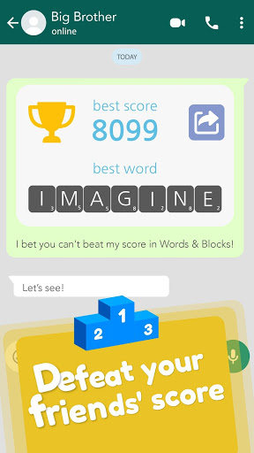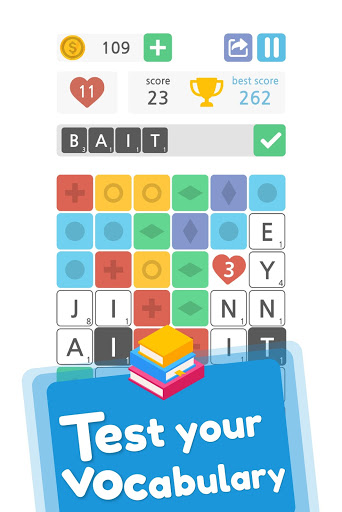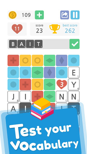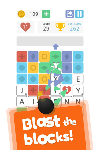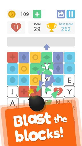 Words & Blocks is a fun way to expand your vocabulary and have a good time playing with your friends. Test your mental ability in this entertaining word game. Destroy the colored blocks, discover letters and form all the words you find. Use the power ups to unlock lines and stay in the game. Get extra moves, bombs or coins and keep scoring points.