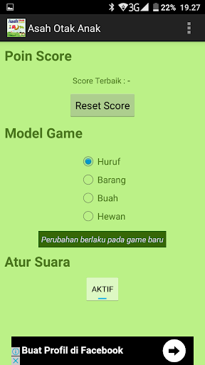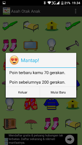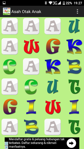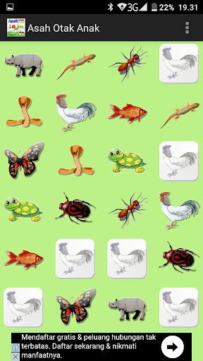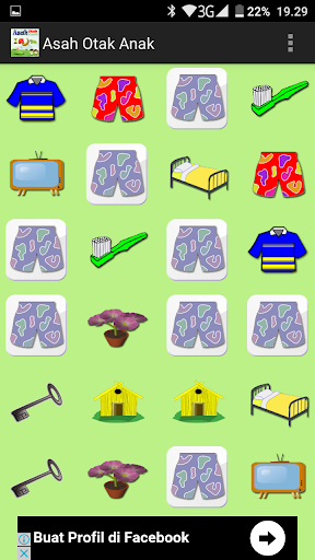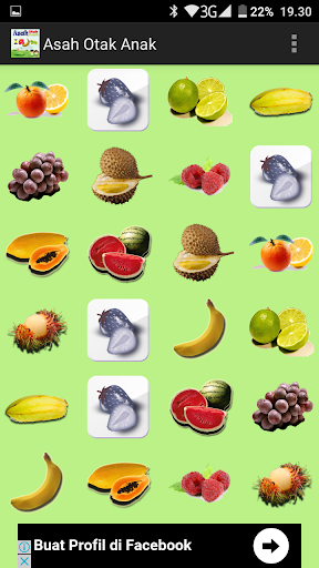 Sharpen memory for child is an application that trains the child's brain memory in remembering objects. An image randomization app which then children will search for the same image. This application provides 4 (four) types of game mode images namely Letters, Objects, Fruits and Animals.