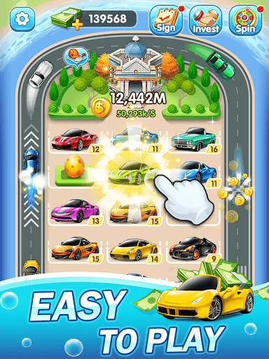 Start your race line empire, discover new cars! Just buy cars with coins and merge identical cars to unlock new cars. Have fun and explore your car tycoon! 🚗🏎️