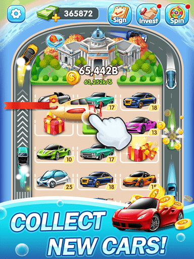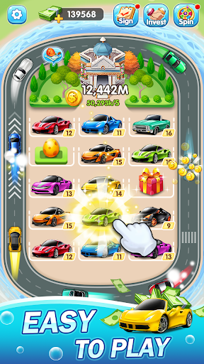 Welcome to the idle car merging game! Fill your garage and merge the same cars as fast as you can to get more luxury ones. Here, you are a tycoon. You need to manage your cars and make them race to earn more money for you. Come and play this addictive game.