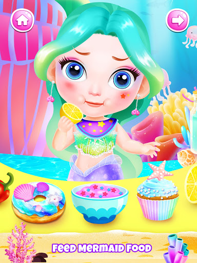 - FEED & BATH your little mermaid. Your baby is really hungry, prepare to feed her with apple, lollipop, milk, and even cupcake. Pay attention to the reaction when you feed different foods.