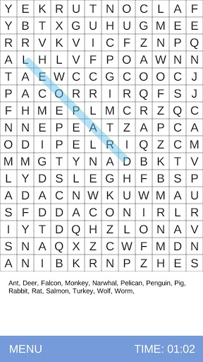 Search and find all the words hidden in the grid in this classical word search game! In this search word puzzle you can choose between 3 difficulty level, 16 categories and play in timer mode.
