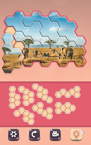 No time limit! A fun and relax hexa jigsaw game. play the classic puzzles at your own speed!. You can get helps by using hints!
