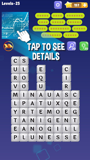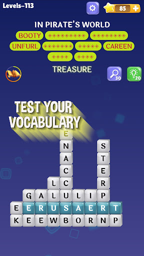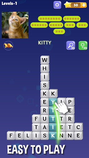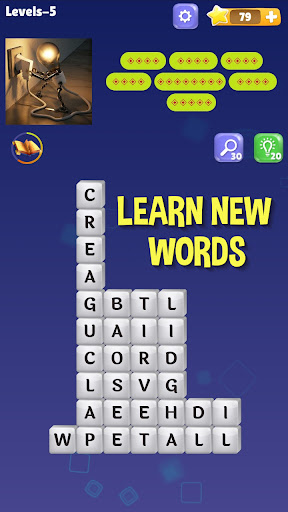 Look deeply in the picture to get the clue, Connect letters to perform a word, and destroy the word stacks.