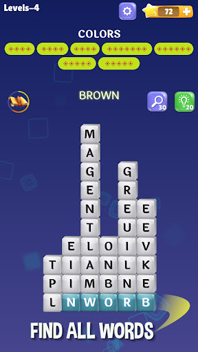 Welcome to word stacks game, Test your notice skills, Play this perfect wordscapes game which is a brain teaser. You are free to play it any time and any where. No boring with large variety of words themes(Animals, food, music, whether, ..)