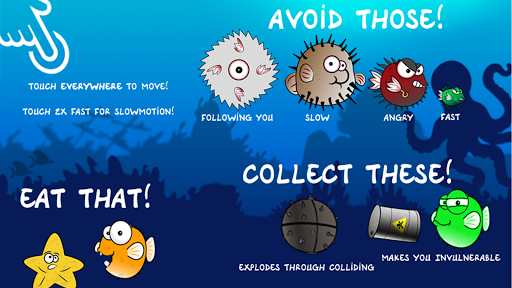 Benny is hungry, very hungry and in order to survive he sneaked into enemy's territory stealing and munching their food. Certainly, they don't want that and try to stop you by bristling with their prickles and therefore, you should beware of every physical contact! A variety of puffer are among them which are all different in their features. On top of that, the game comprised some weapons like Bullet-Time, Radioactive Mode, Underwater Mine and a Boss.