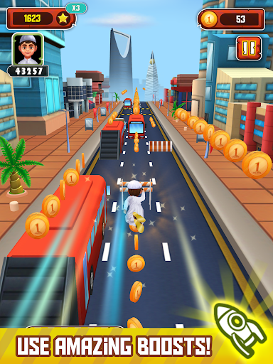 You’ve been mischief chilling out with mobile for fun. Your father gets furious and wants to teach you a lesson! Don’t get caught or you will be punished. Take the runner boy safely through the city, run as fast as possible, dodge the challenging obstacles, use the powerful boosters, jump up or slide down to escape your father, and Complete missions to earn coins and increase your multiplier. You won’t regret downloading this amazing Arab running game.