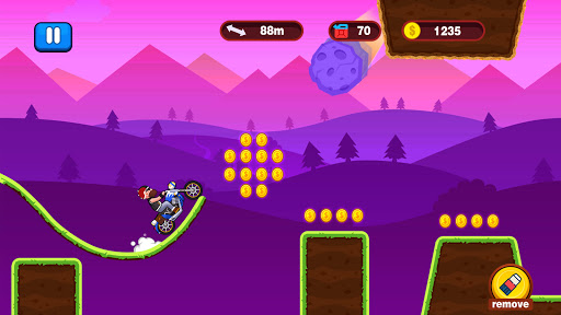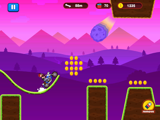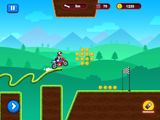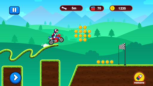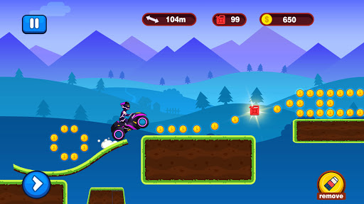 You need to collect coins on the road constantly to buy new moto for helping your adventure.