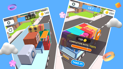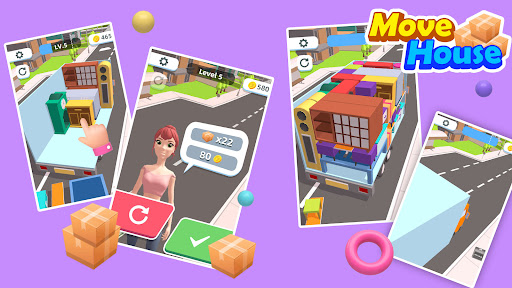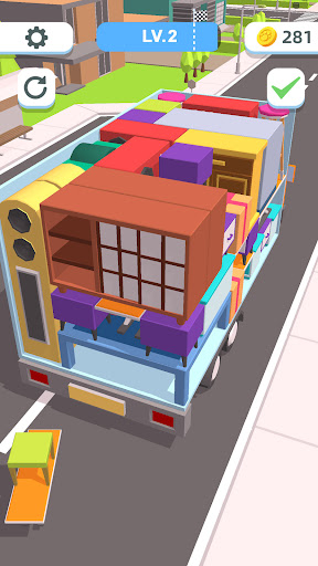 There is so much furniture that needs to be moved. Such as sofas🛋, armchairs🪑, TV📺, bed🛏 and more! Move all the furniture out of the houses into a truck! Try changing the orientation of the furniture to make use of all the space on the truck as much as possible.