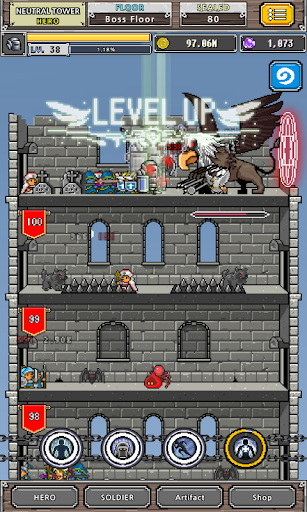: Clear boss towers to acquire powerful heroes and buff items.