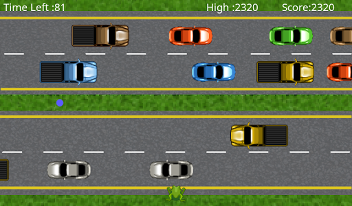 A remake of the popular classic arcade game Frogger. Where you control a frog and the idea is to get the frog to cross the road without getting runover. The second part you have come to a river and have to cross the river without falling in the water by jumping on logs etc until you get to the otherside. You simply place your finger infront of the frog on your touch-screen and he will follow. It fast paced and a race against the clock see how many times you can cross the road and river before the time runs out. You will change colour if you eat the bonus fruits in the centre of the screen.