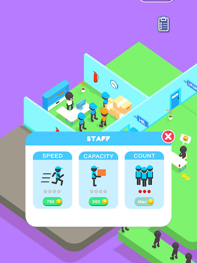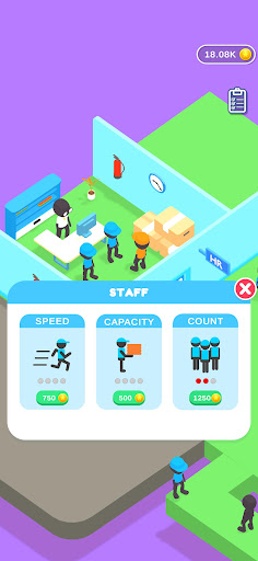 - Support your staff by upgrading their speed, capacity & many more to earn extra coins