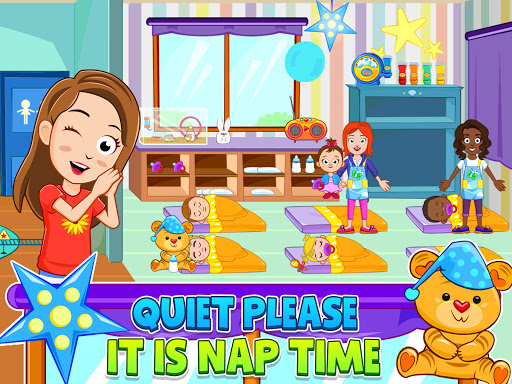 My Town: Daycare brings six cute babies and 12 happy characters, from teachers to family members. There are six locations to discover including a playground complete with swings and a slide. You can interact with almost every item you see, so after putting the babies down for a nap (make sure to cover them up with their blankets!), you’ll have time to set the table for dinner or grab some food from the fridge!