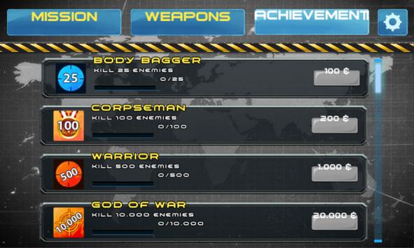The player controls the shooting target by touching and swiping the screen, releasing a bullet with the weapon icon on the right. Control mechanism is quite simple, but to have the correct shot to the right target is extremely difficult.