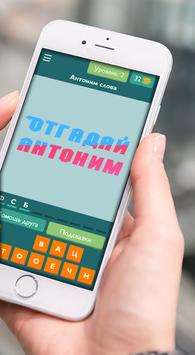 Игра упрощается тем, что слово антоним необходимо собрать из букв снизу методом подбора.