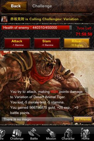 Hundreds of people can be involved as a team in the [Challenge] with giant BOSS. You will win the opportunities for masterwork equipments after BOSS beat.