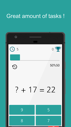 Develop your intellectual facilities by solving various mathematical tasks as quickly as possible: addition, subtraction, multiplication and division! Limited amount of time for answering only stimulates your brain to work faster, better and more efficiently.