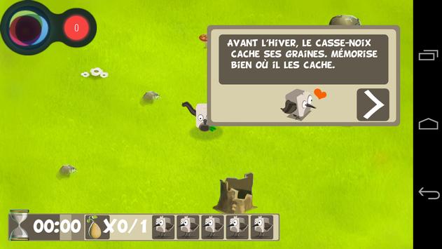 Mémorisez où le casse-noix a caché ses graines et une fois l’hiver venu, aidez le à retrouver ses graines.