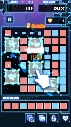 - Tap the big block to pop it up with the connected small blocks to gain points.