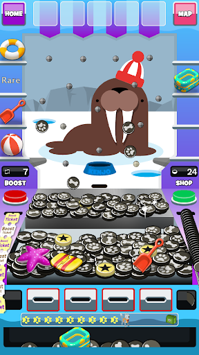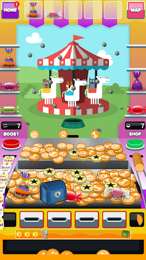 Drop your coins in the slot and watch as they bounce through the pegs and onto the pusher. You can spin your coins with a flick of your finger to try to control where they land. If you're lucky your coin will land in the bonus catcher and you'll be rewarded with a special bonus token. Collect bonus tokens for more prizes and high value coins.