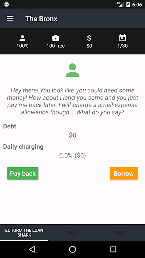 You start the game being completely broke, but fortunately el Toro, the loan shark, offers to lend you some money.