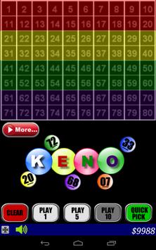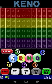 Keno is similar to Lotto. Play Keno, you select a minimum of 2 but no more than 10 numbers between 1 and 80. Hope you enjoy it !