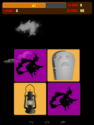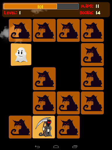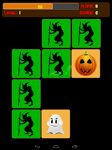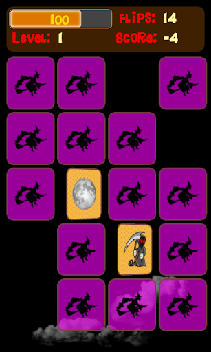 There is a number of cards hiding images of Halloween symbols. Tap to see card's face. Only two cards can be rotated at once. Find pair of matching and they will gain score and disappear. Get bonus when you complete a puzzle. Remove all cards in time. Higher level - lower time. Save time - get score. No time - spend score. The most fun begins when little time available. The game lasts while you have time or score points. Get the top level you can!