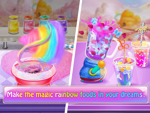 Go travel to the rainbow magic land to explore yummy rainbow unicorn foods! Such as rainbow grilled cheese, unicorn cotton candy, ice cream rolls, marshmallow wands, and the fantastic rainbow latte!