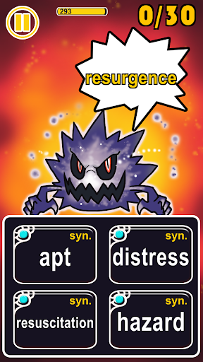 Fighting back against the monsters’ attacks isn’t easy, so be on your guard! With a variety of moves to choose from, including synonyms, antonyms, related words, and derivative words, you must think and respond expeditiously. Engage a monster by identifying the synonym, antonym, related word, or derivative word that correctly matches the monster’s attack. Achieve a score of 70% within the 300-second time limit to defeat a given stage. Defeat all ten stages to defeat a monster. Only the tenacious will succeed! Levels increase in difficulty, testing words that appear less frequently on the SAT and that are usually more sophisticated.