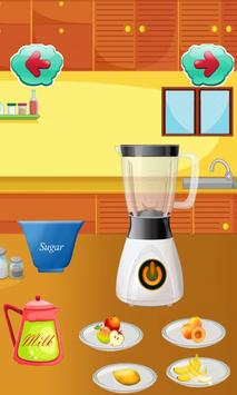 5) then trebiue to make them a fruit juice, so we mix apples, peaches, bananas and a pear, and we put in a mixer.